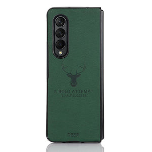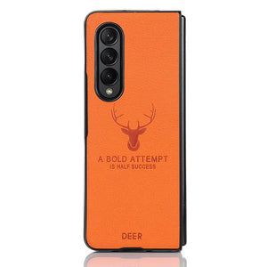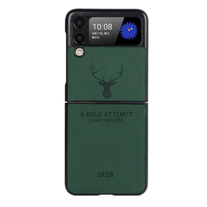 Luxury Deer Pattern Anti-fingerprint Leather Case Cover for Samsung Galaxy Z Flip 3 4 Fold 3 4 Series